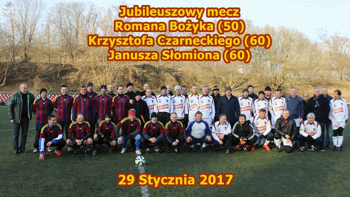 29 styczna 2017 roku, o godzinie 14:30, w Szczecinie, na sztucznym boisku przy ulicy Witkiewicza, zgromadziła się spora grupa entuzjastów piłki nożnej aby wspólnie uczcić okrągłe jubileusze naszych kolegów Krzysztofa Czarneckiego (60), Janusza Słomiona (60) i Romana Bożyka (50). Jak to wśród piłkarzy bywa najlepszym pomysłem na uczczenie tak doniosłego wydarzenia było rozegranie okolicznościowego meczu. Ponieważ Roman to podpora drużyny Lekarzy, a Krzysztof i Janusz od lat stanowią o obliczu drużyny Oldbojów Pogoni, nie było problemu z doborem przeciwników. Lekarze zmierzyli się z Oldbojami Pogoni. Mecz poprzedziła krótka część oficjalna oraz wykonanie paru okolicznościowych fotek wszystkich uczestników tego wydarzenia.